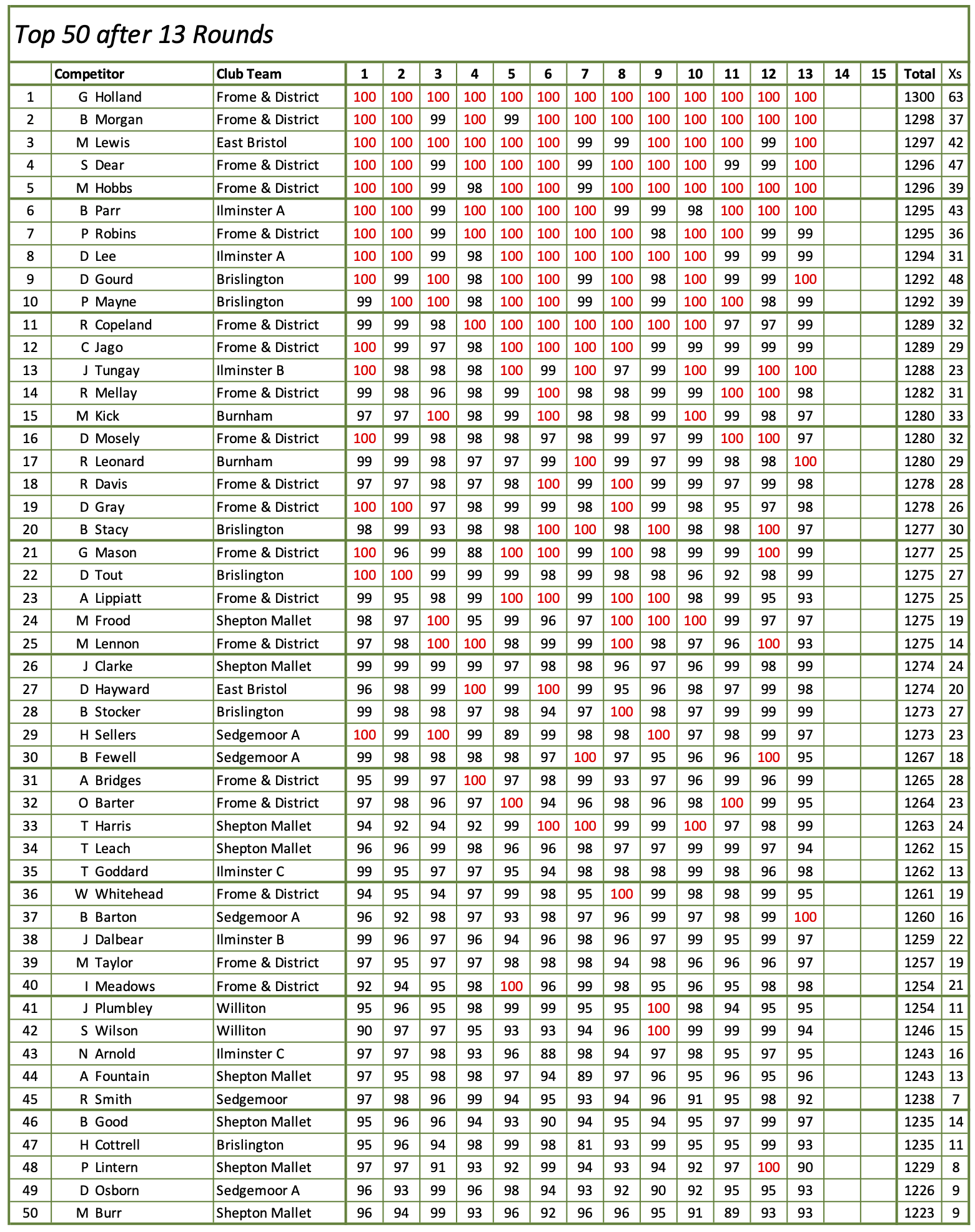 County Silver Medal (Bench Rest) - Current Scores