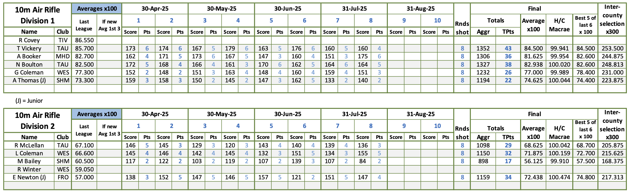Air Rifle - Current Scores
