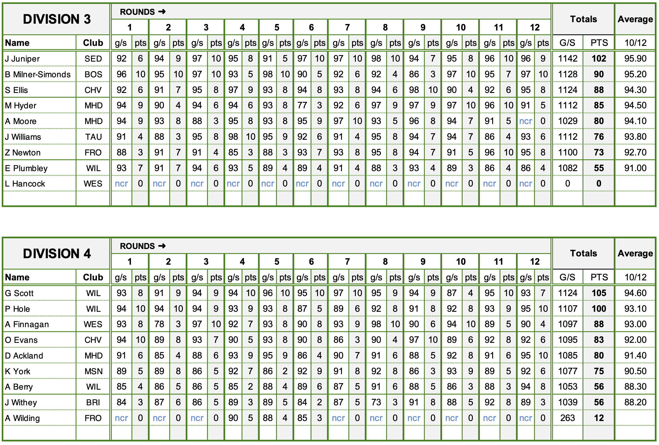 Divisions 3 & 4 - Final Scores