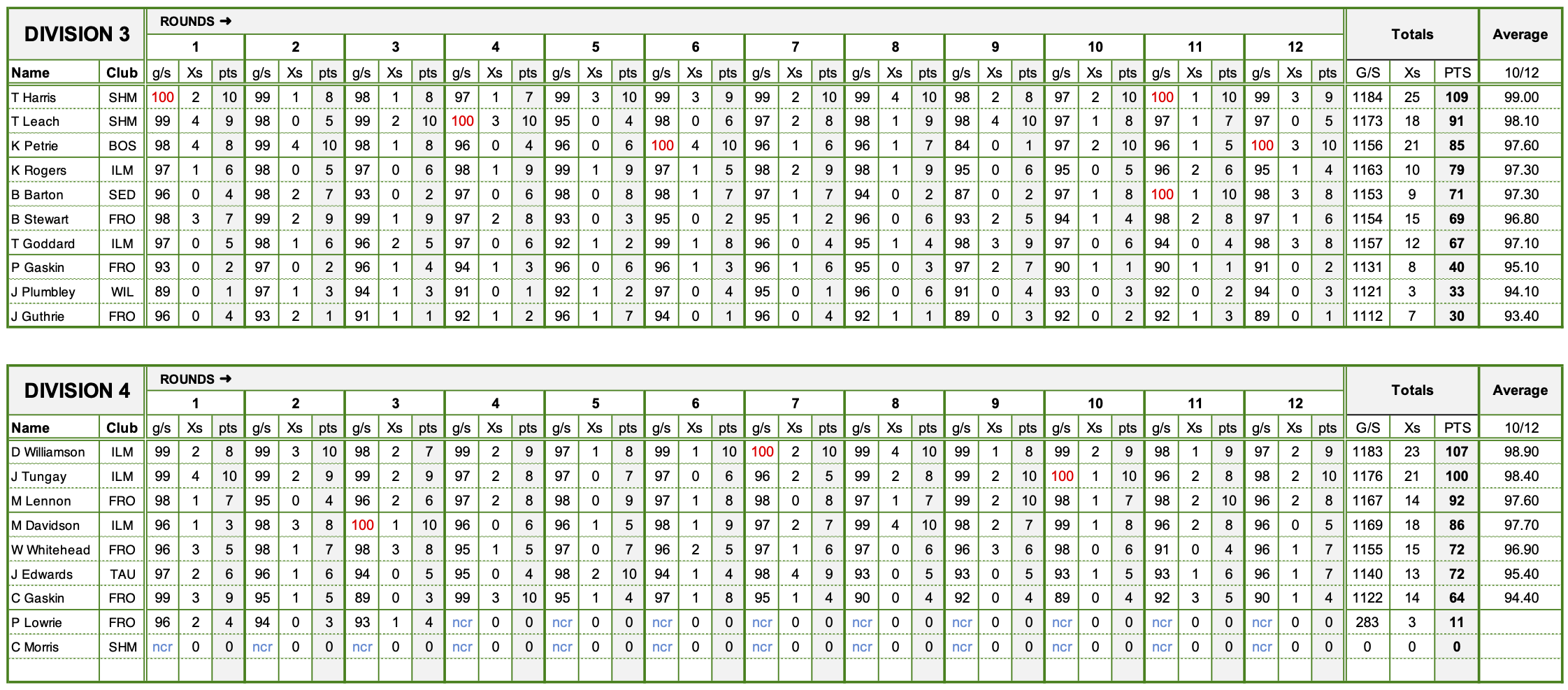 Divisions 3 & 4 - Final Scores