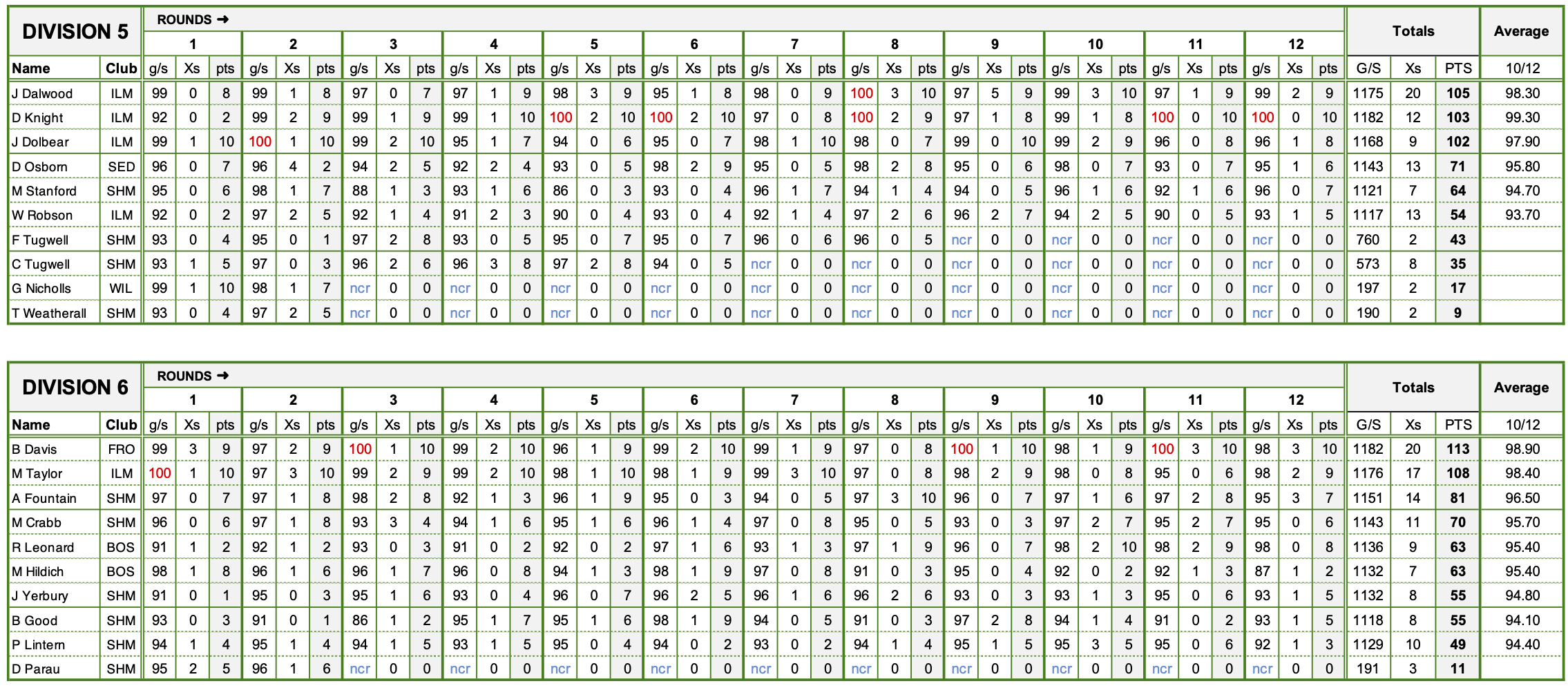 Divisions 5 & 6 - Final Scores