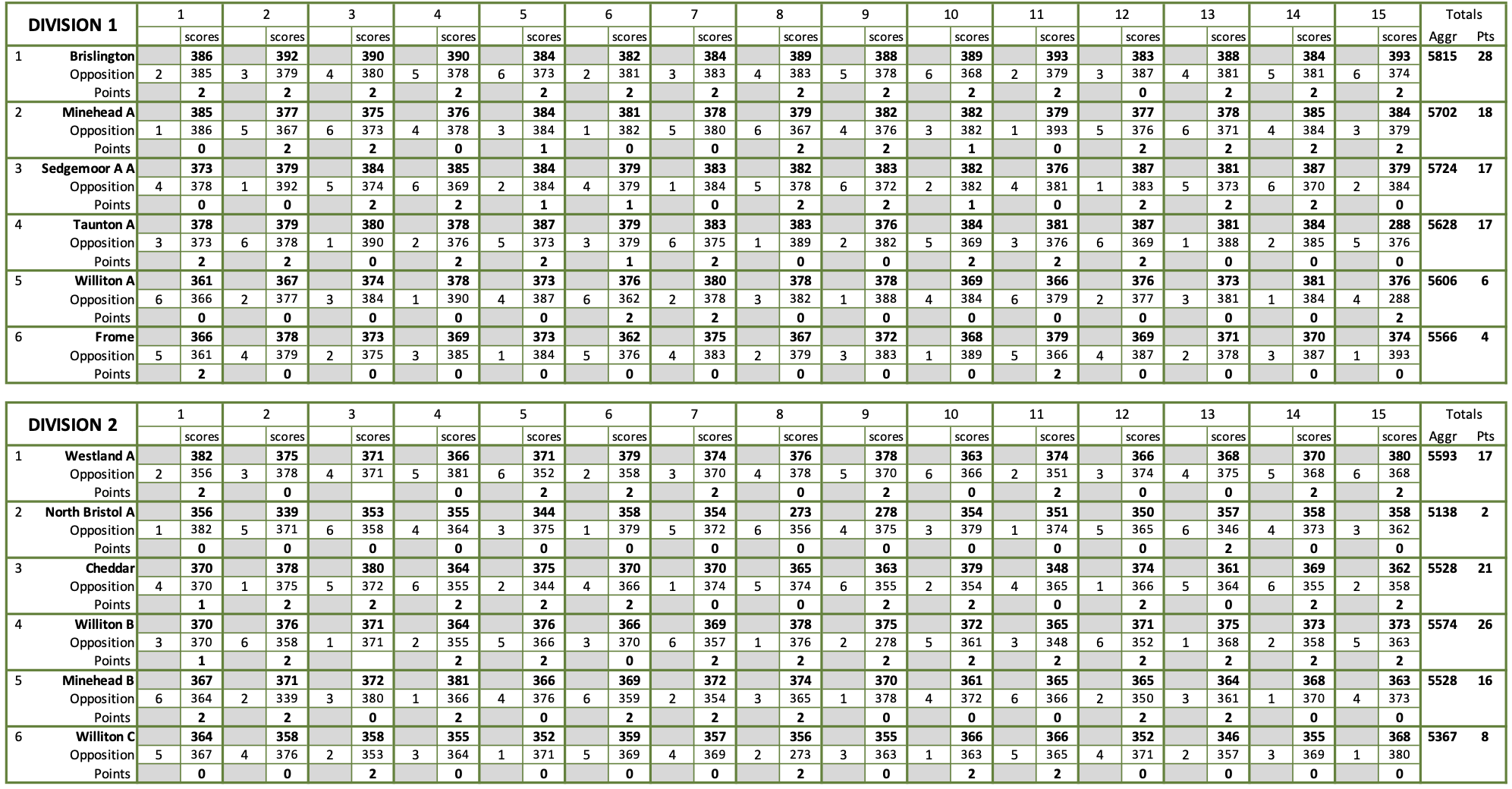 Divisions 1 & 2 - Final Match Results