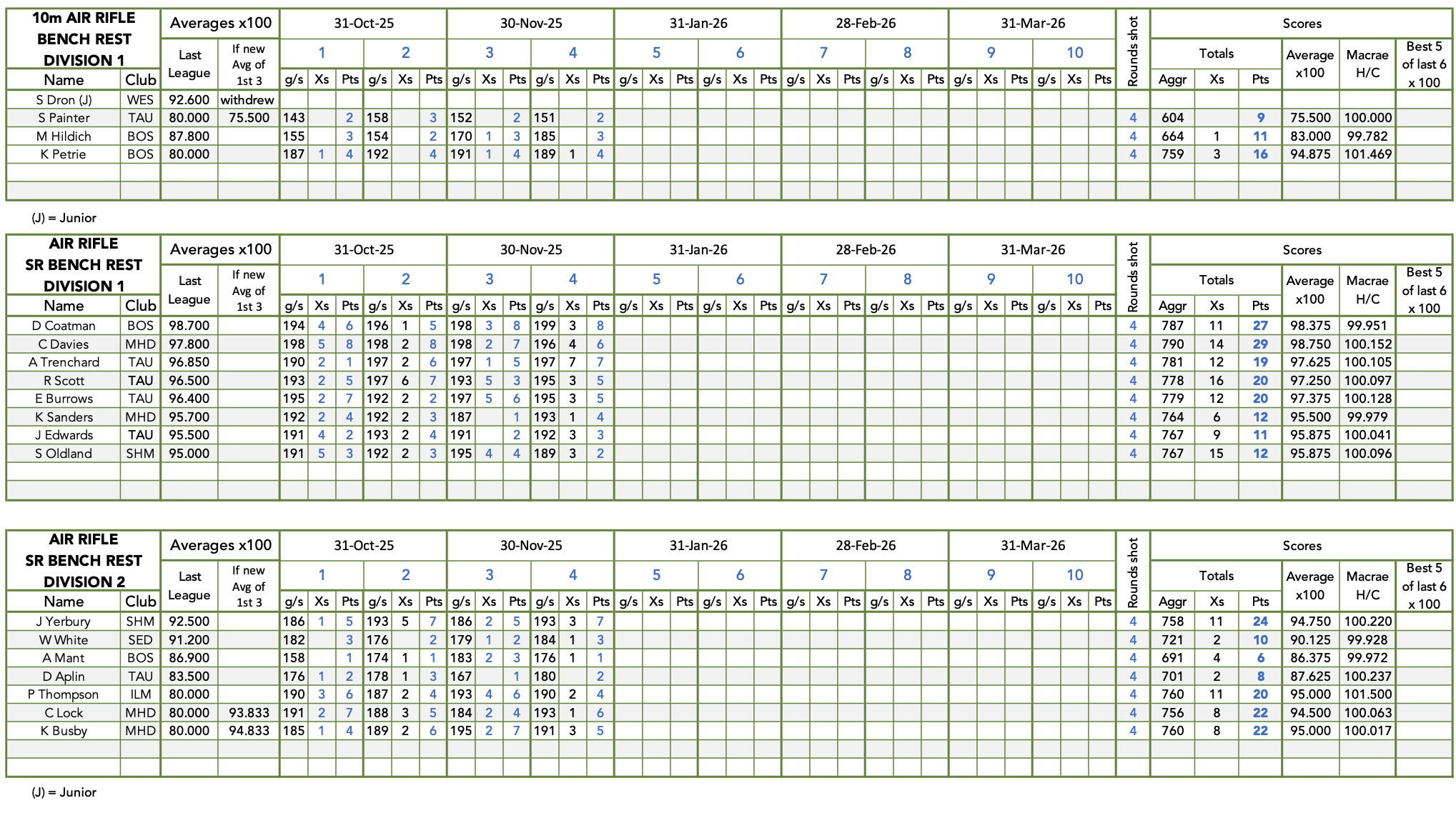 Air Gun, Air Rifle Bench Rest & LW Sport Rifle - Winter League 2025/26