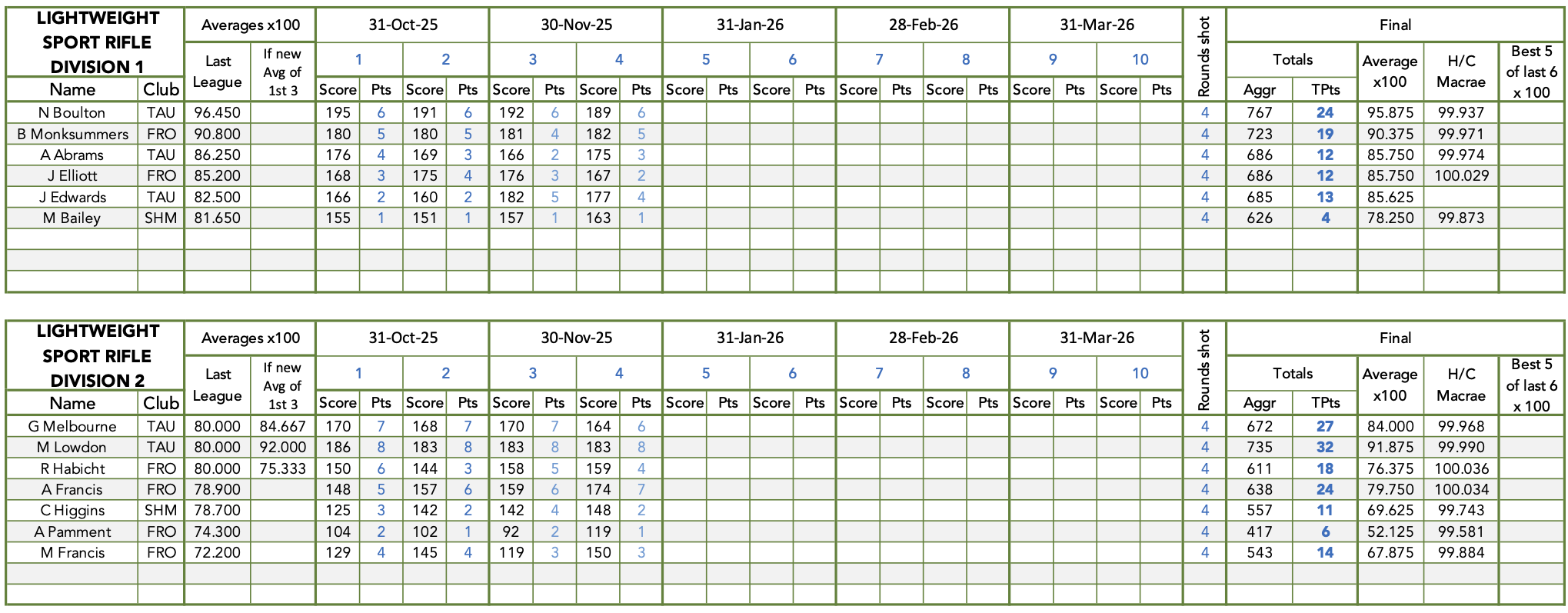 LW Sport Rifle - Current Scores