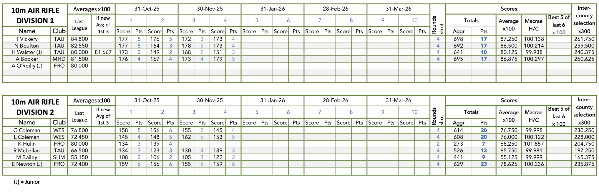 Air Rifle - Current Scores
