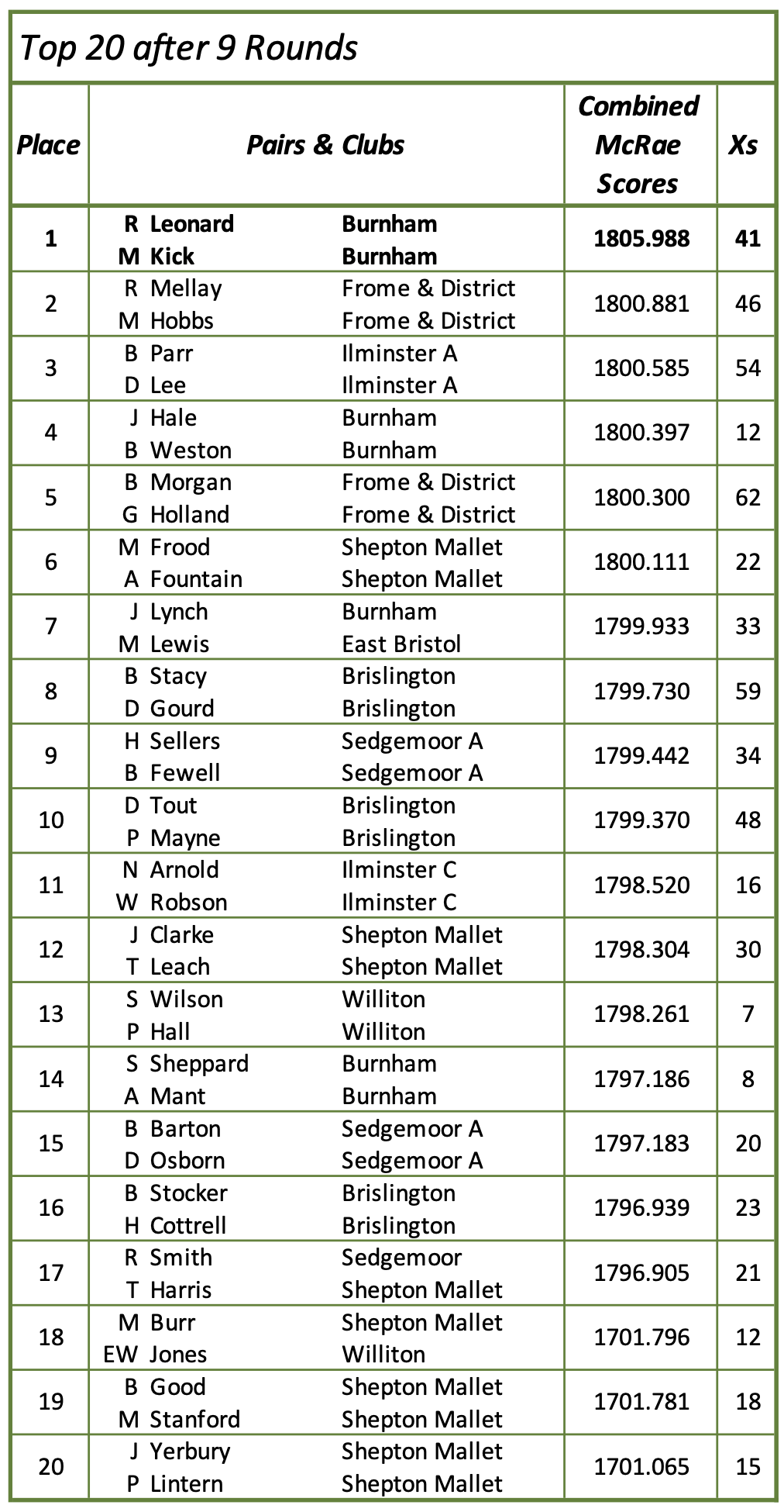 Mike Griffin Memorial Shoot (Bench Rest) - Current Scores