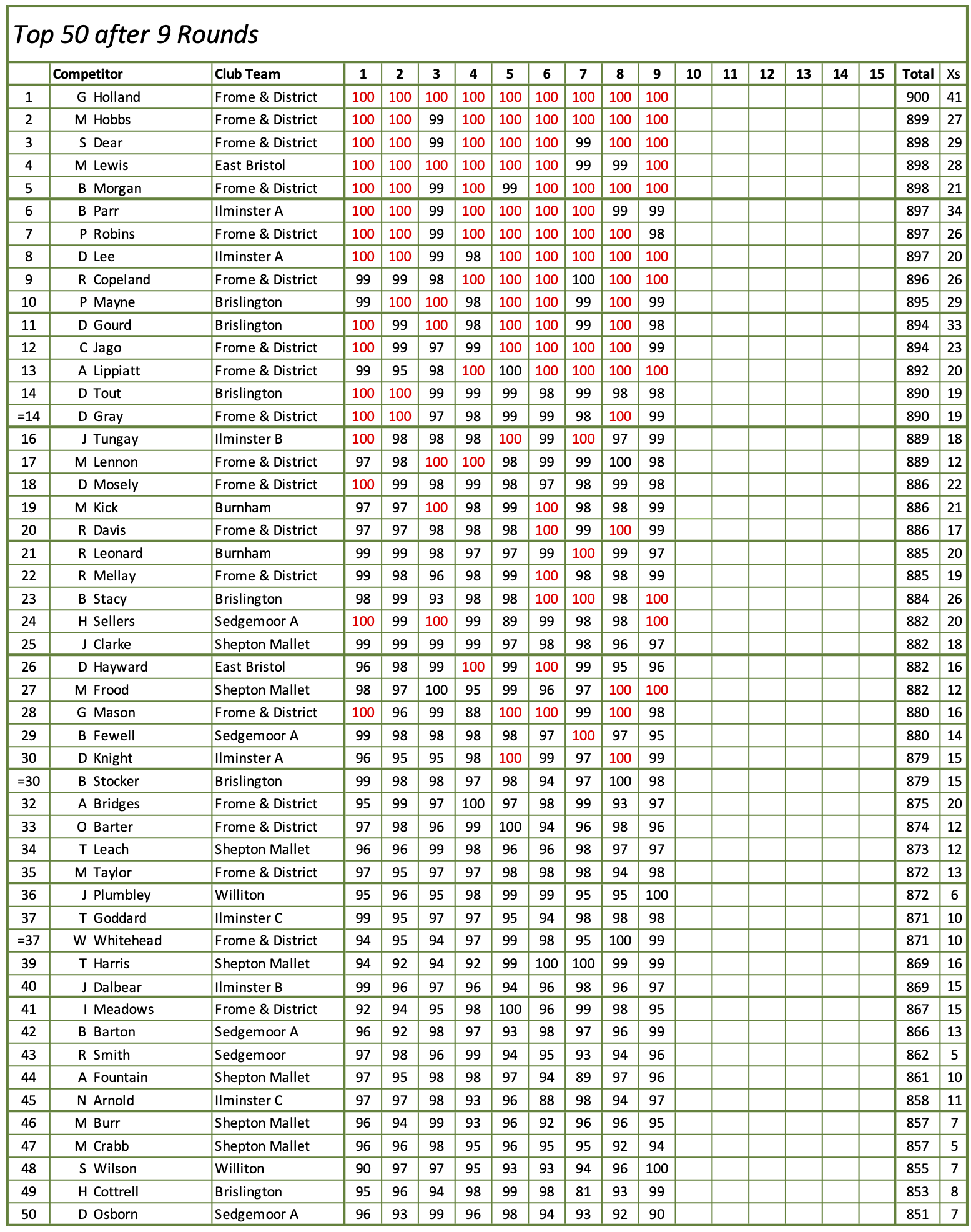 County Silver Medal (Bench Rest) - Current Scores
